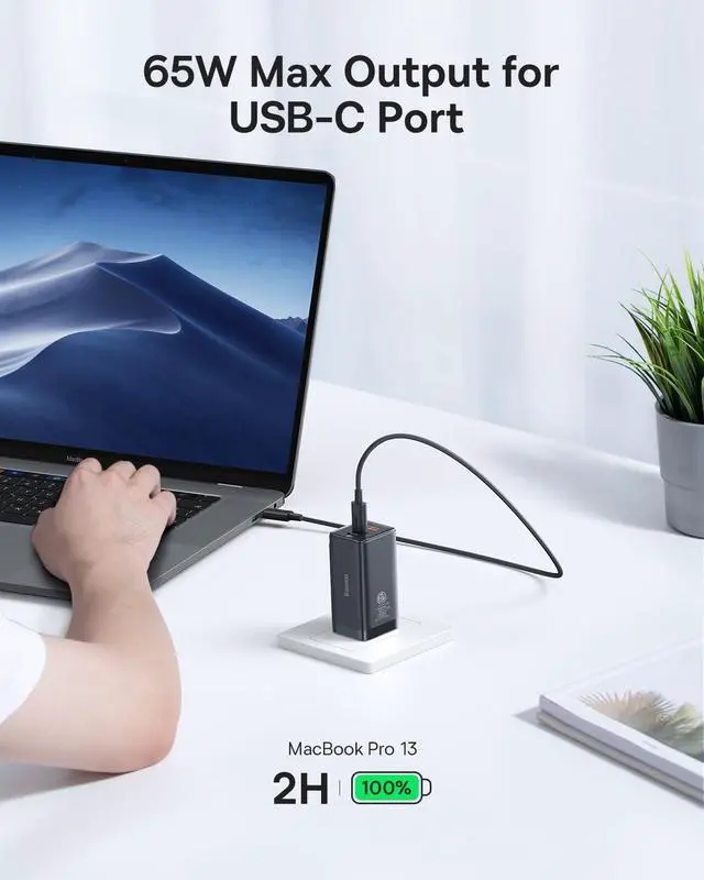 65W USB C Charger Block: Designed to deliver the optimal power output to charge different device at full speed. 2 hours to fully charge your MacBook Pro 13, and compatible with all USB-C laptops (Lenovo, Dell, HP, Chromebook, Surface, Acer, and more)