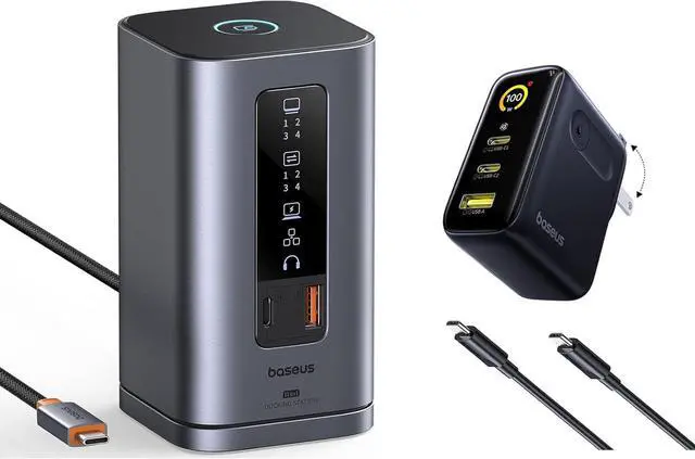Bundle Content: 1*Baseus Docking Station Spacemate(Win) 11 in 1, 1*Baseus Picogo 100W USB C Charger, 1*100W USB C Cable