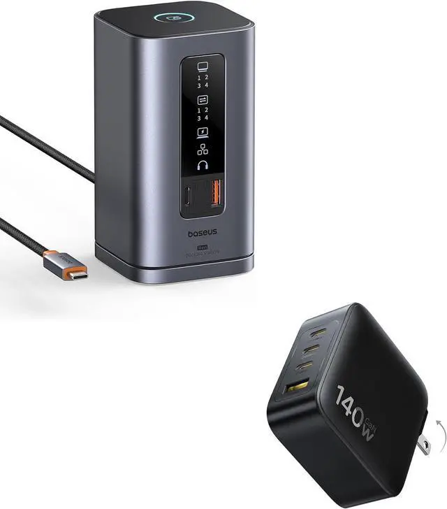 Max. 140W Power Delivery: Baseus 140W usb c charger has Two USB-C ports can deliver up to 140W power when used separately. Easily charge your MacBook from 0% to 100% in 97 mins. You can use those two ports to fast charge two MacBooks, with each output delivering up to 70W. Convenient fast charging for offices or travel.