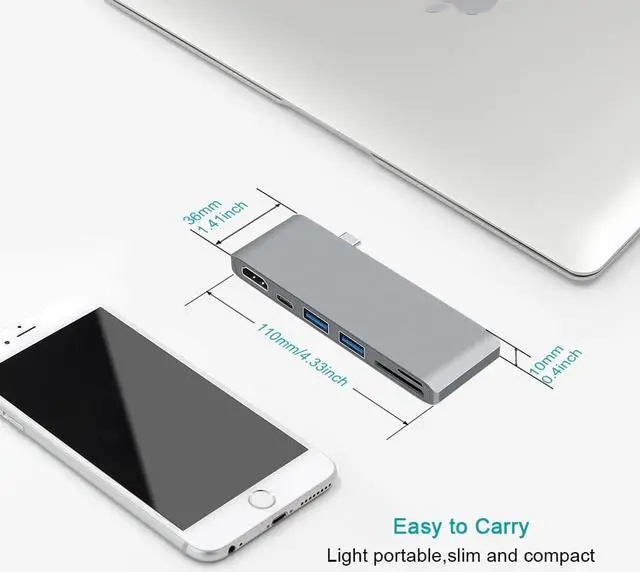 The Aluminum USB-C Hub is the newest compact design to our Type-C collection. 6 in 1 Thunderbolt to USB C Hubs Adapter can support high speed data transmission, pass-through charging, micro SD / SD card reader, and have two USB 3.0 extension ports. USB C Hub for 2016/2017 MacBook Pro 13” and 15”.Thunderbolt 3 port: up to 2x4k video output, up to 40Gb/s data speed. USB-C port: transfer up to 5Gb/s data between macbook pro and your phone, hard disk, usb trumb.