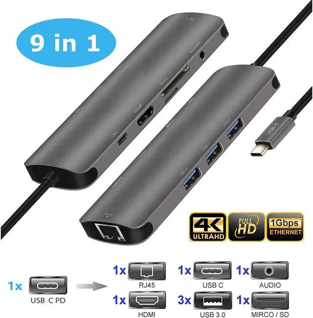 Connect to your MacBook or other USB-C devices with the multiport USB-C hub featuring an Ethernet port, a USB C charging port with power delivery, a 4K/30Hz HDMI port, a SD card reader, a TF card reader, a 3.5 mm Audio/mic 2-in-1 jack, 3 USB 3.0 Ports, allowing you to connect a keyboard, USB driver, external Disk or Wired headset to your USB-C devices. This USB C hub applies to all laptops with type-c port.