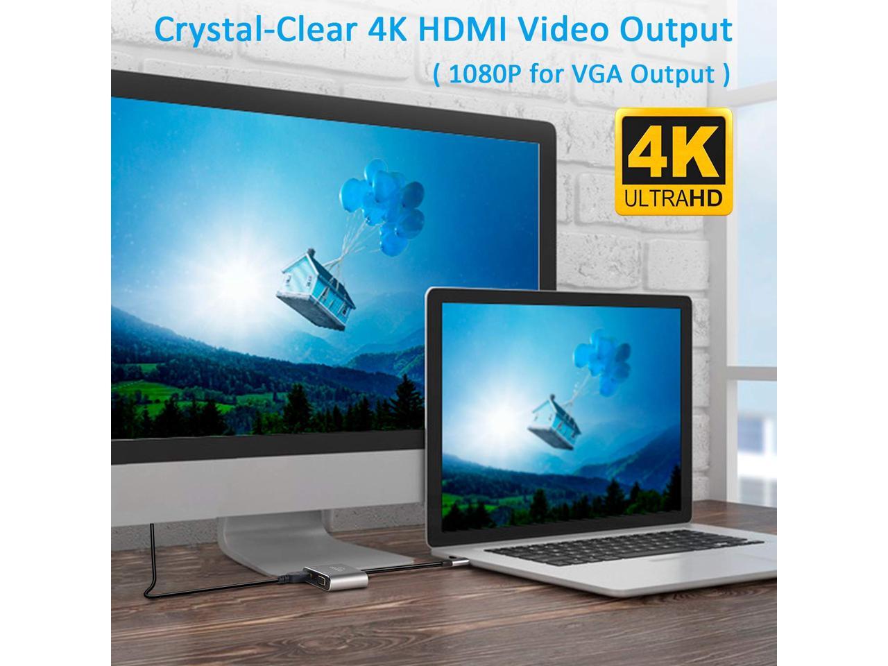 - This USB C to HDMI VGA Adapter is just plug and play,no need additional driver.It supports reversible Type C Connection.