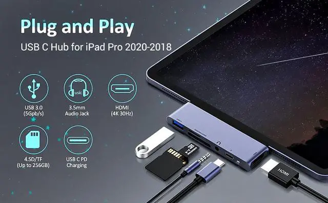 6-in-1 USB C HUB specifically engineered for New 2021/2020/2018 3rd 4th 5th Generation iPad Pro 11/12.9 and iPad Air 4