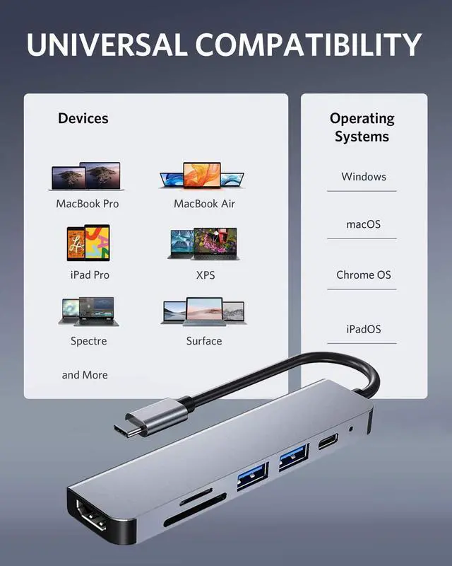 SIX-IN-ONE USB MULTI-FUNCTION HUB: You can expand the laptop with Type-C port to six ports: PD fast charging, 4K HDMI, 2 USB 3.0, SD/TF card reader, it is plug and play, no need to install drivers and support hot swapping. You can connect more devices and avoid problems caused by insufficient computer ports.