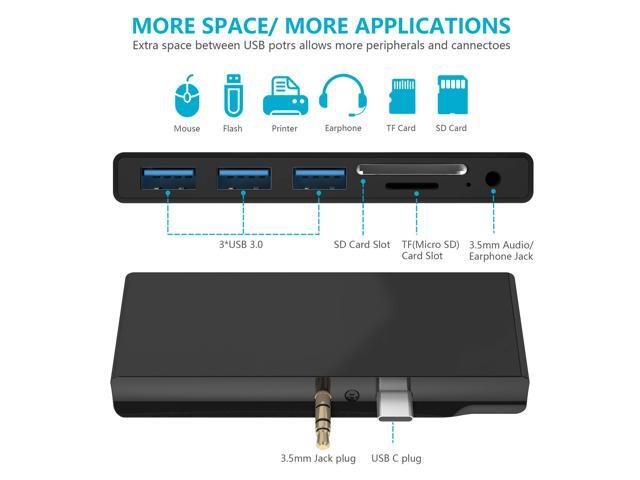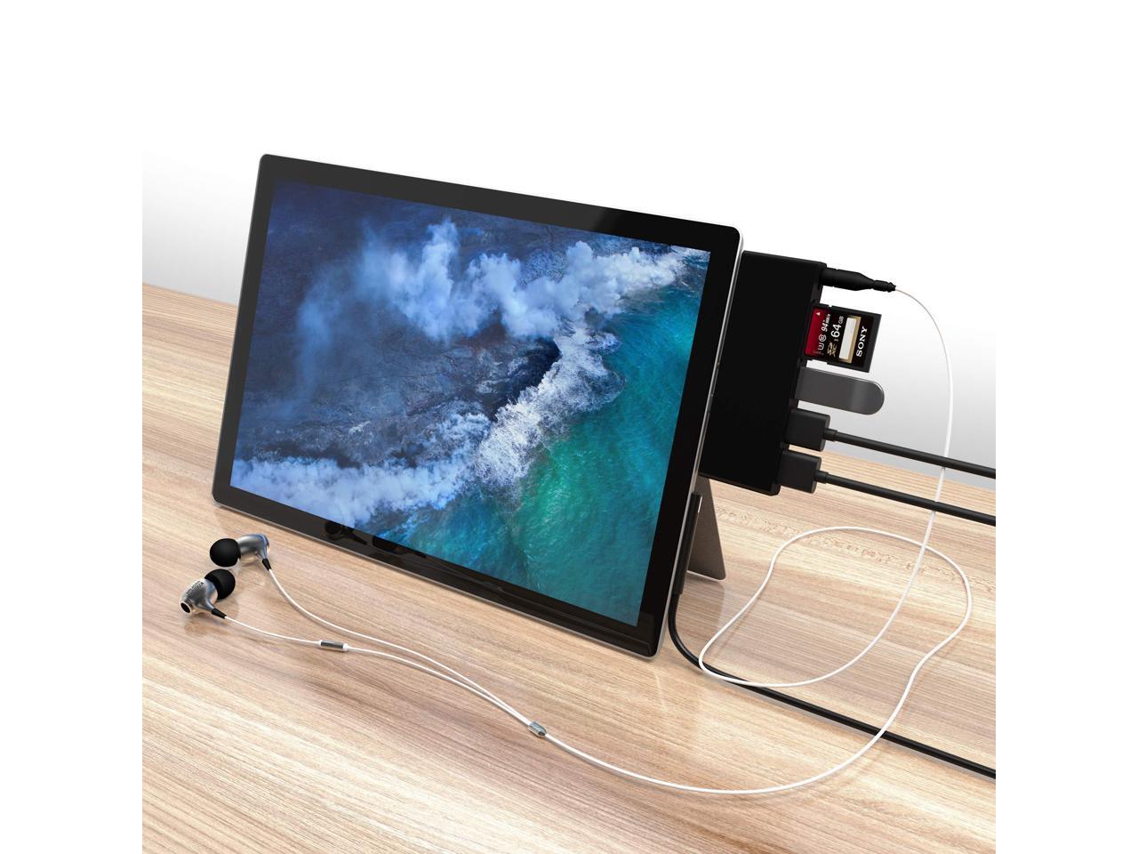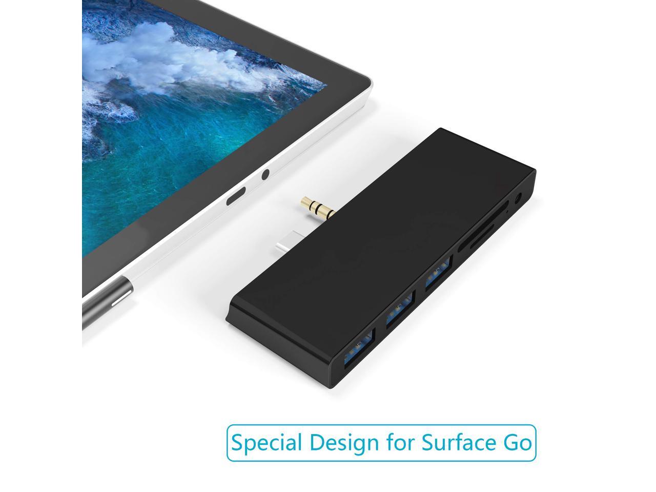 - Surface Go Docking Station, 6-in-1 USB C Surface Go USB Hub Adapter Dongle with 3 USB 3.0 Ports, 3.5mm Audio/Headphone Jack, SD/TF Card Reader for Surface Go