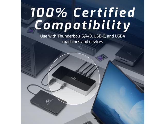 - Works with Millions: No worries or confusionconnect to Thunderbolt 5, Thunderbolt 4, Thunderbolt 3, USB4, or USB-C machine or device with 100% compatibility; 2 Year OWC Limited Warranty, Thunderbolt 5 Cable included