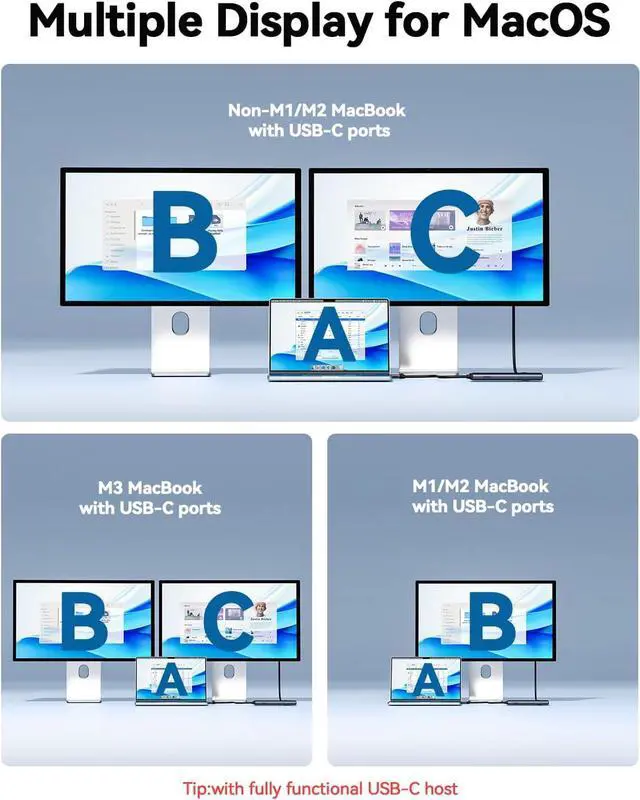 Universal Compatible USB C AdapterLaptop accessories hub can plug and play, works with most USB-C/3/4/5/USB4 devices, such as MacBook Pro, MacBook Air, MacBook M1, M2, M3, M4, iMac, iPad Pro, iPhone 16/15, Del XPS, Surface, H-P, etc. The hdmi multi-port adapter also works with a wide range of operating systems, including Windows, MacOS, Linux, etc.