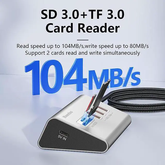 SD+TF 3.0 Card Reader:104MB/s,support read and write 2 cards at same time
