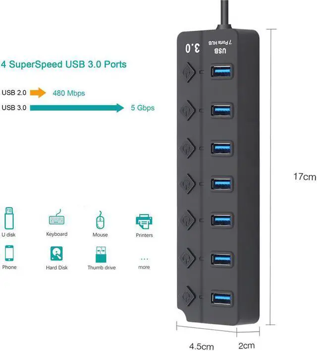 High Compatibility This hub is USB splitter 3.0 for keyboard, wireless mouse, HDD, camera, good USB 3.0 hub for PS4, for Xbox, for Mac