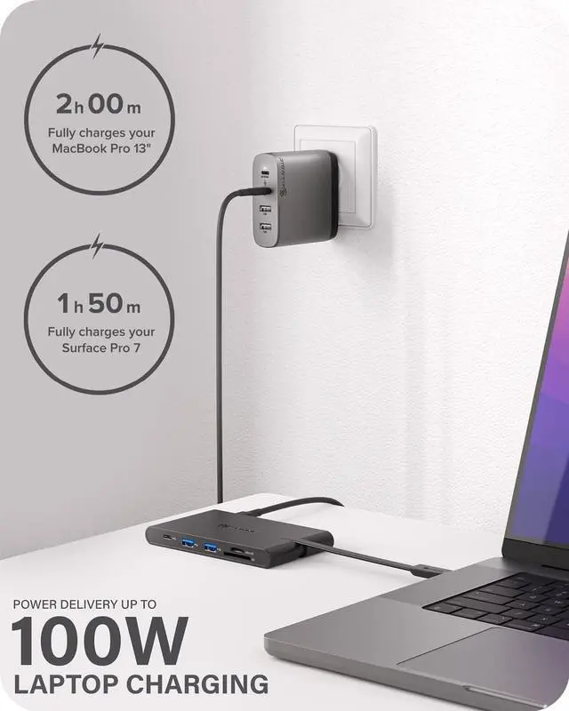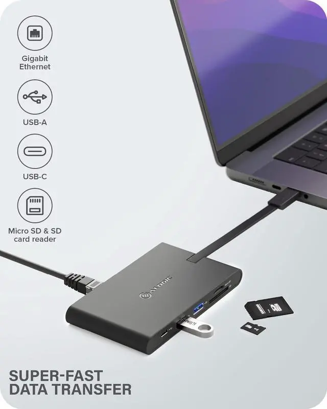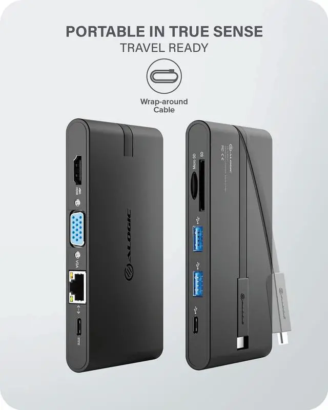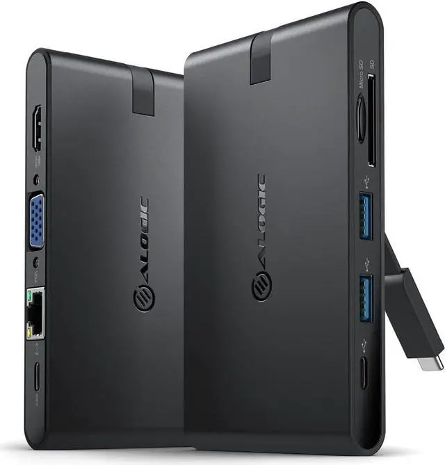 4.4 out of 5 starsALOGIC USB-C Travel Dock Pro with HDMI 4K@30Hz, VGA, 2X USB 3.0,Gigabit Ethernet,Micro/SD Card Slots, 2X USBC for Data and Power delivery;Compatible with USB-C and Thunderbolt 3.0 Enabled laptops
