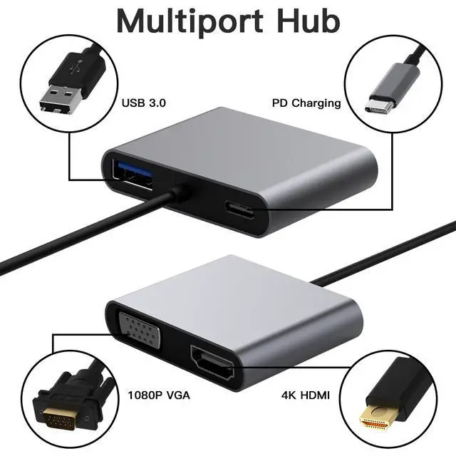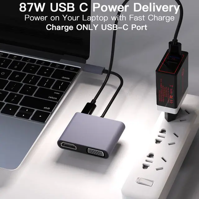 -Ports: HDMI (Female) + VGA (Female) + USB 3.0 + USB-C PD Charging (Female)
