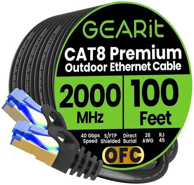 [NEXT GENERATION PERFORMANCE] GEARit Cat8 (Category 8) Ethernet Cable is the most powerful, advanced ethernet cable available and boasts higher data transfer rates than lower rated ethernet cables. Our Cat8 Ethernet Cable provides enhanced performance, as it uses 2Ghz to transfer data from 1Gbps up to 40Gbps.