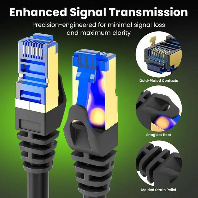 [Wide COMPATIBILITY] Our Ethernet Cables are compatible with Cat5/Cat5e/Cat6/Cat6A/Cat7 and is suitable for extra long network cable needs such as ethernet for routers, laptops, computers, modems, gaming consoles (i.e PS4/PS5/Xbox One/Xbox 360), printers, scanners, Smart TVs, and network switches. Great for online gaming, high definition video streaming, server applications, cloud computing, and video surveillance.