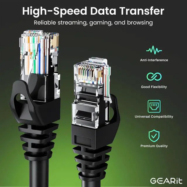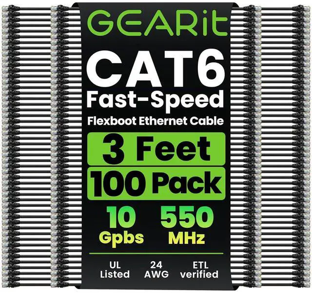 GEARit 100-Pack Cat6 Patch Cable 3 Feet Cat 6 Ethernet Cable Snagless Flexible Soft Tab - Premium Series - Black