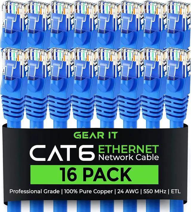 High-Performance Cat 6 Ethernet Cable Pack GEARit's 16-pack of 7 ft Cat6 ethernet patch cables features 24 AWG UTP stranded conductors twisted in an X-structure spline to minimize crosstalk and deliver full 10 Gbps bandwidth - future-proof network cables for home, office, data-center, and server use.