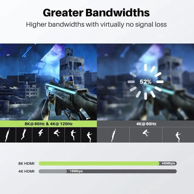 UTRA HIGH RESOLUTION - There is no signal loss and compression, even for 8K signal transmission. Supports 8K Ultra HD resolution, 8K@60Hz, 4K@120Hz, Dynamic HDR, eARC, VRR, QFT, ALLM, QMS.