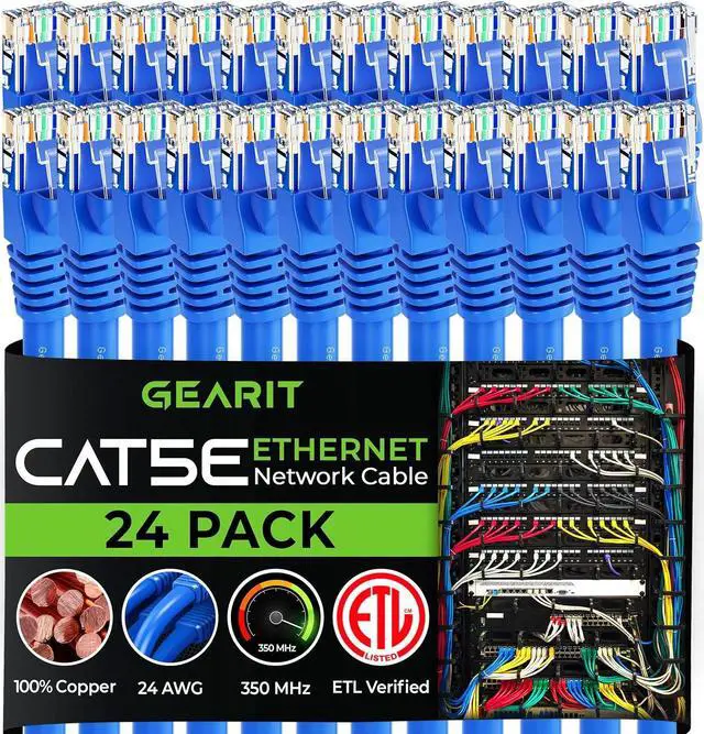 GearIT 24-Pack, Cat5e Ethernet Patch Cable 10 Feet - Snagless RJ45 Computer LAN Network Cord, Blue - Compatible with 24 48 Port Switch POE Rackmount 24port Gigabit