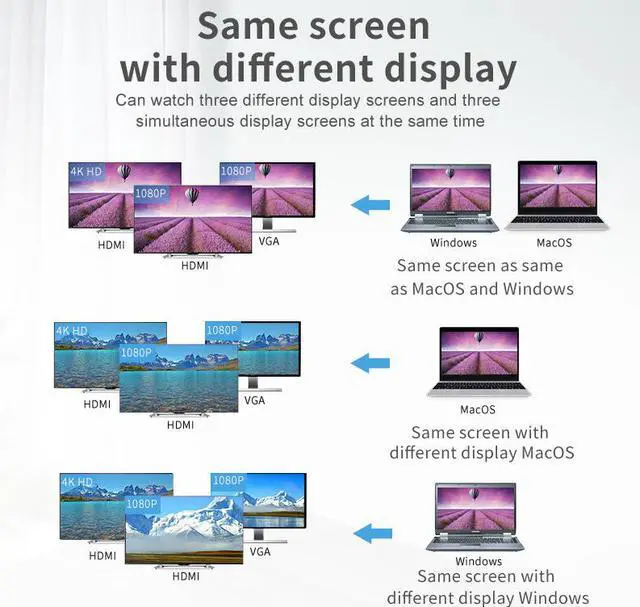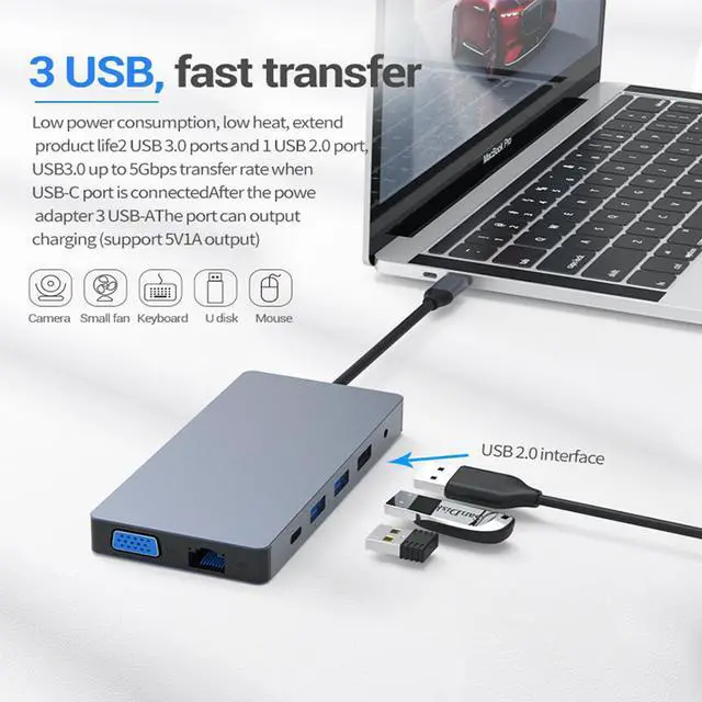 Expansion USB-C Hub: The USB C to USB Hub easy to expand your USB C port to dual HDMI 4K ports, 1080P VGA output, support 2 USB 3.0, and 2 USB 2.0 Ports, RJ45 Ethernet, TF&SD card reader up to 2TB. you can enjoy USB 3.1 Type C data transfer and type c 100w PD charging, display expansion at the same time. Reliable and super-speed data