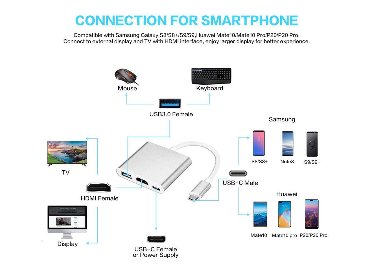 - [4K UHD HDMI PORT]: Enables you to mirror or extend the display of your phone/laptop to your TV, projector or monitor in up to 4K UHD (3840x2160@30Hz) resolution.