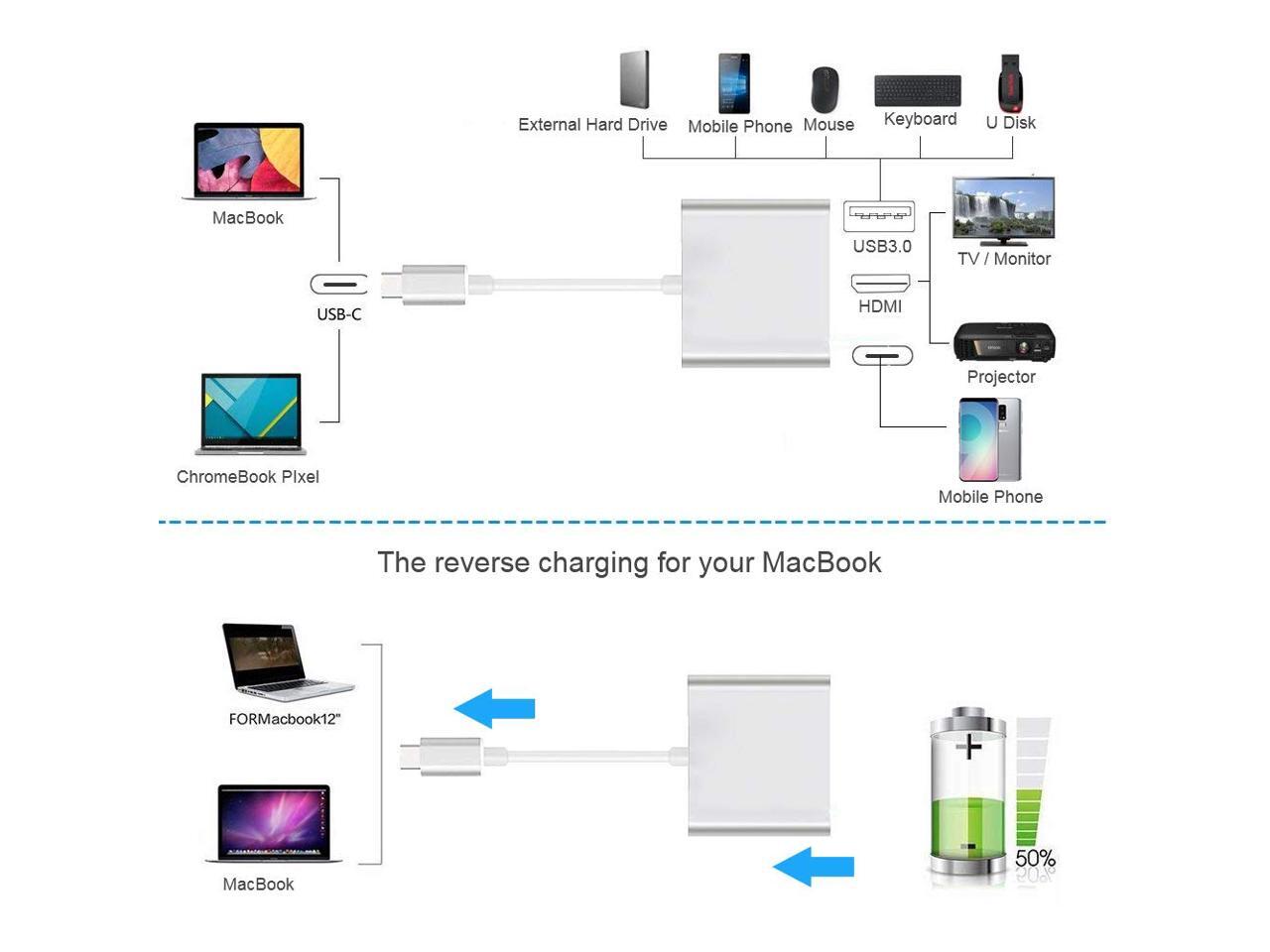 - [2021 UPGRADED VERSION]:Expands computer ports into a HDMI 4K output port, a USB 3.0 port, a USB-C charging port.Three ports can work at the same time.
