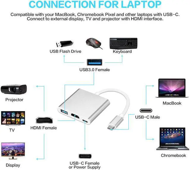[Broad Compatibility ]:The type c adapter works well with USB-C 3.1 port devices. Compatible with MacBook/iMac/Chromebook/Samsung/Projector/Monitor Macbook, and other monitor & projector with HDMI port.