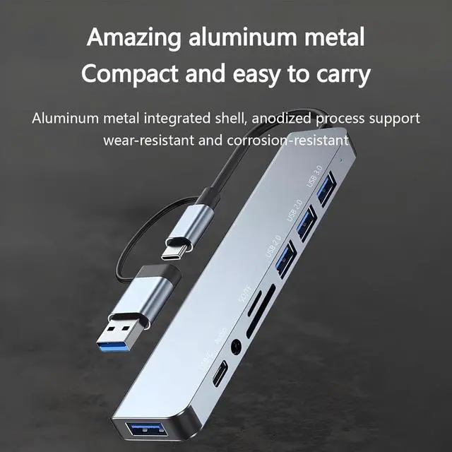 Hannord 8 IN 1 USB A & C Dual Hub, Expand Multiple Possibilities