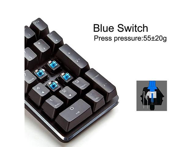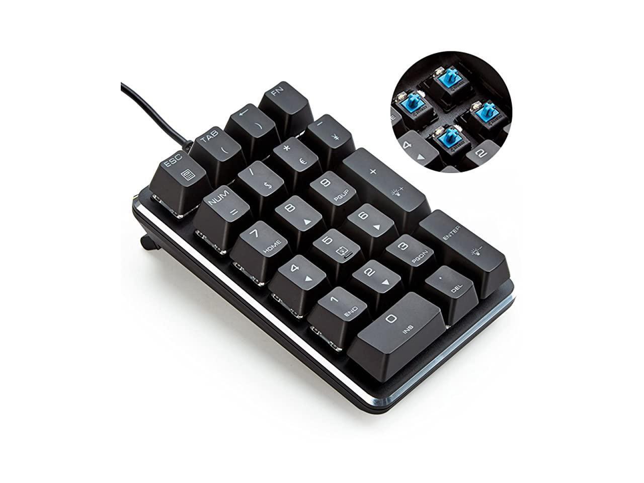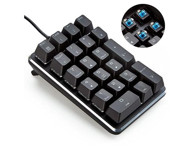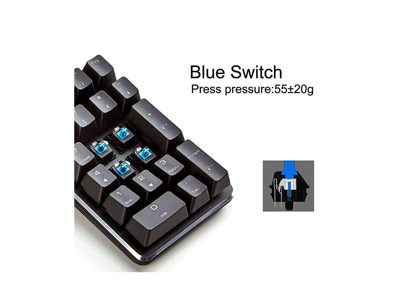 USB Numeric Keypad Mechanical USB Wired Numeric Keypad with Blue LED Backlit 21Key Numpad for Laptop Desktop Computer PC Black Blue switches