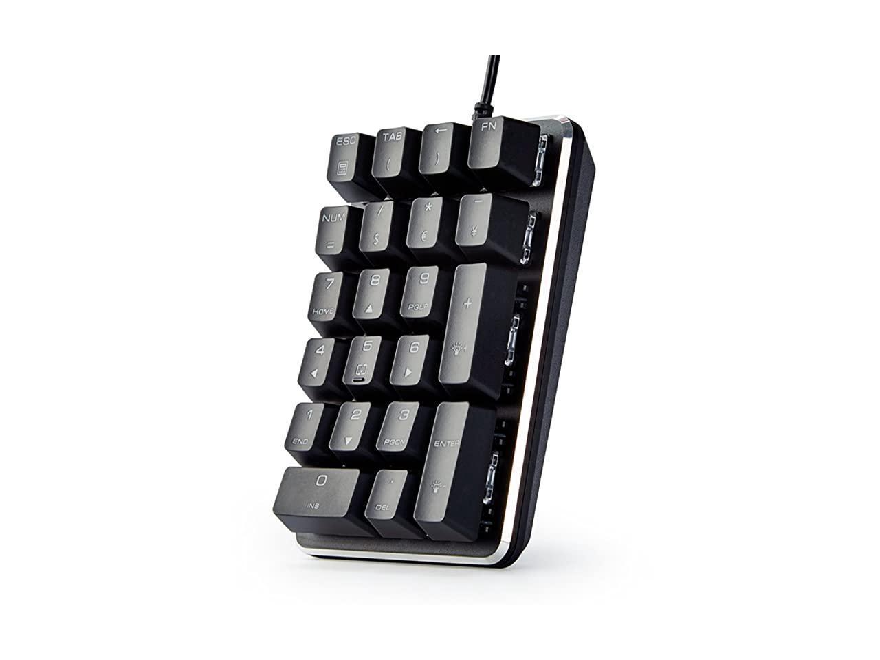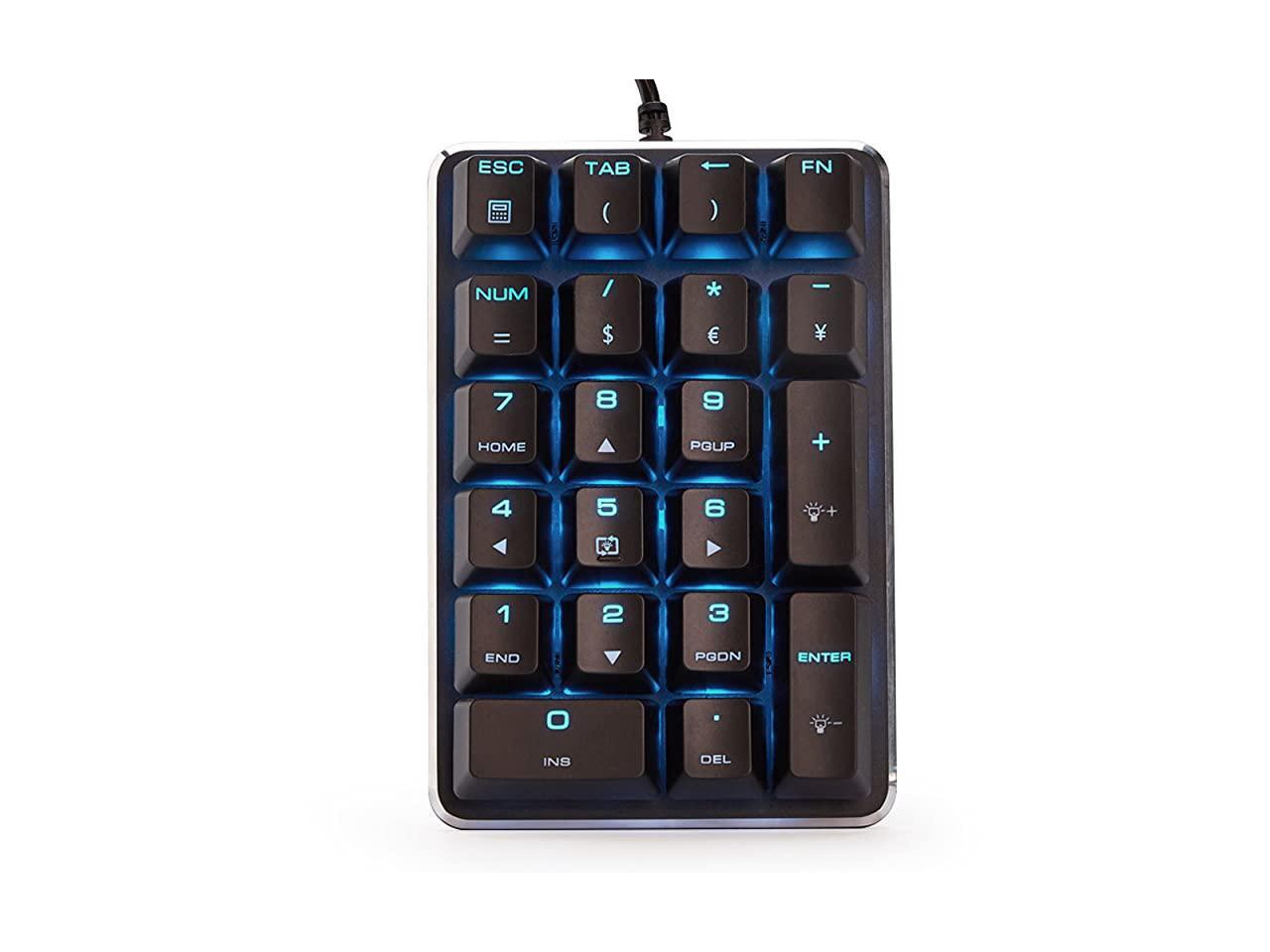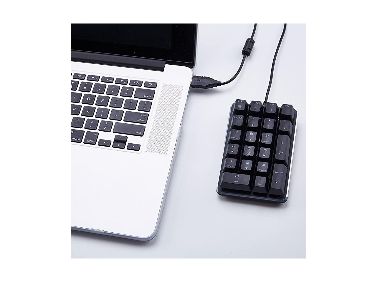 USB Numeric Keypad Mechanical USB Wired Numeric Keypad with Blue LED Backlit 21Key Numpad for Laptop Desktop Computer PC Black Blue switches