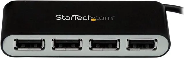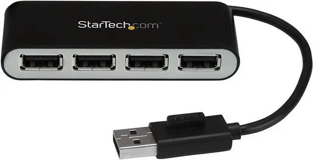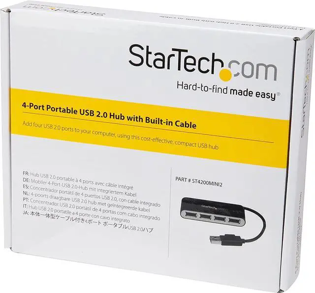 The South City Mall. com ST4200MINI2 USB 2.0 hub turns a single USB connection into four connections. This compact hub has lightweight housing with a small footprint design for travel or desktop placement. It supports up to 480 Mbps throughput, with extra port spacing for larger USB connectors. It is USB bus powered and features a built-in cable, which allows you to carry the hub with you anywhere. This 4-port hub has convenient port layout on one side for easy port access when connecting or disconnecting devices. USB hub is perfect for travel or desktop placement.