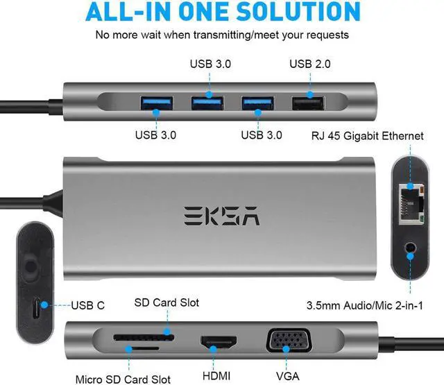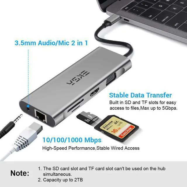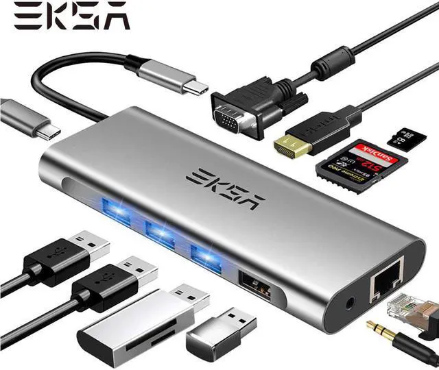 ET9H USB Type C HUB 11 IN 1 USB HUB to USB 3.0 2.0 RJ45 VGA HDMI Card Slot 3.5mm Adapter Dock Splitter for MacBook Pro