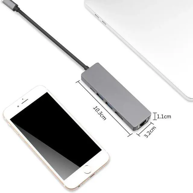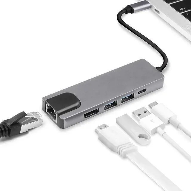 Multiport 3.0 Type c to 2 3.0 Hub HDMI Adapter 5in 1 Type-c RI45 Network Converter Cable for Macbook laptop