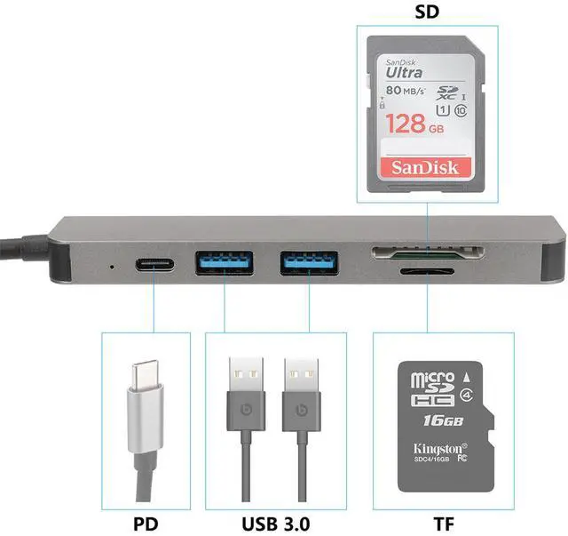Overcome the limitations of your device's connectivity with the Portable USB Type-C Hub Multiport 6-In-1 Adapter for Mac Pro. This durable and portable device is a multifunctional solution for those who need to connect multiple peripherals to their computer. Designed by the reputable brand, Camvate, this high-quality hub is not only convenient but also powerful. Featuring a 4K HDMI output port, it allows for high-definition video transmission, perfect for presentations or movie nights. The SD and TF card readers provide quick and easy access to your stored data, making file transfers a breeze.