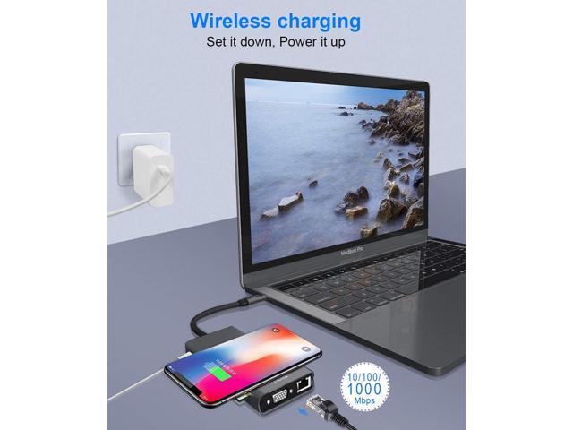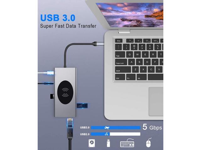 - WIRELESS CHARGER & AUTO-ADJUSTING ETHERNET PORT : The type-C accessories built-in upgraded chip, offers fast wireless charging to all of your devices that support wireless charging such as AirPods Pro. No matter what internet speed you have, RJ45 Port will recognize it and automatically adjust to the highest level.