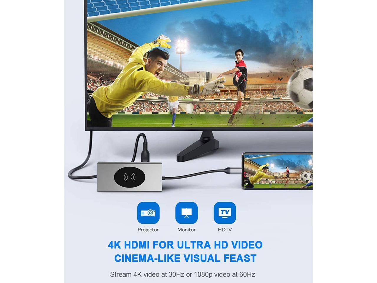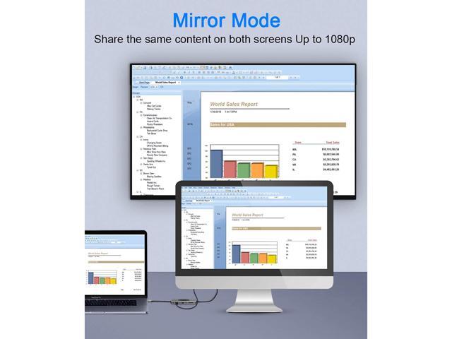 - ULTRA HD 4K OUTPUT : Mirror your USB-C laptop or phone's screen stream 4K HD or full HD 1080P video using HDMI or VGA port. Its compact with easy connection to TVs, monitors, and projector for presentations, conference calls, home theater. Once connected to the HDMI and VGA cable at the same time, the maximum resolution for each display will be 1080P 60Hz.