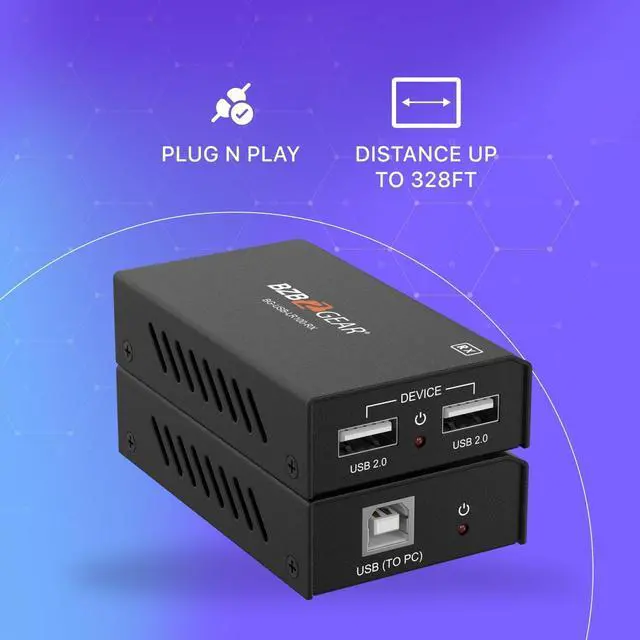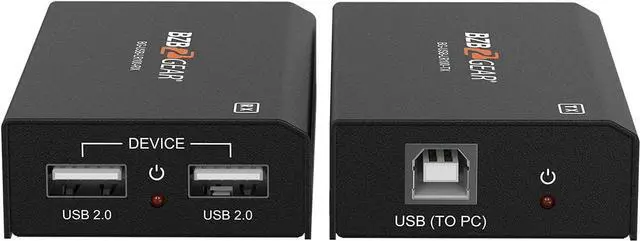 One USB-B port input in transmitter and two USB 2.0 Type A port outputs in receiver