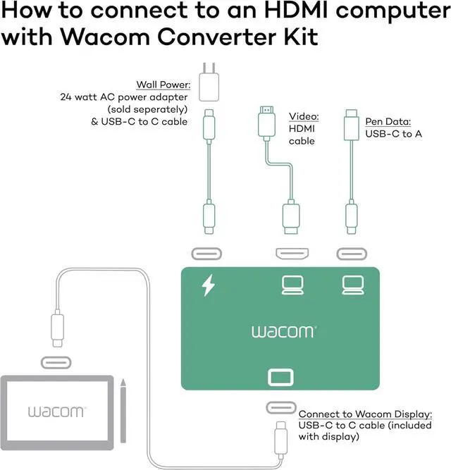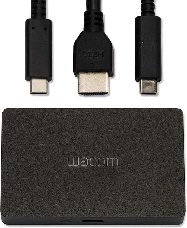 Compact Wacom Converter hub combines power, video (HDMI), and pen data signals into one clean USB-C connection to your display