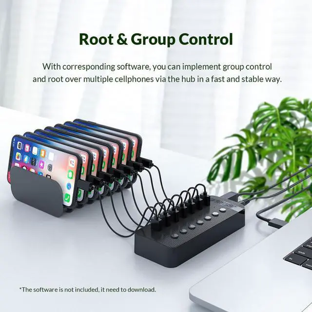 Root and Group ControlWith corresponding software, you can implement group control and root over multiple cellphones Via the hub in a fast and stable way.(The software is not included. it need to download)