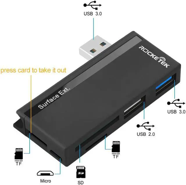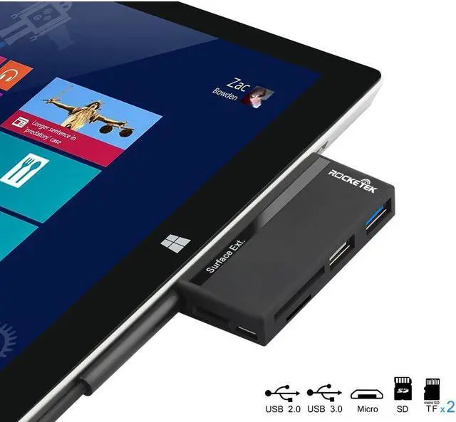 1.Multi-function Combo for Microsoft Surface --- Surface Adapter with USB3.0 port and USB2.0 port, TF card slot, android card slot, SD card slot.