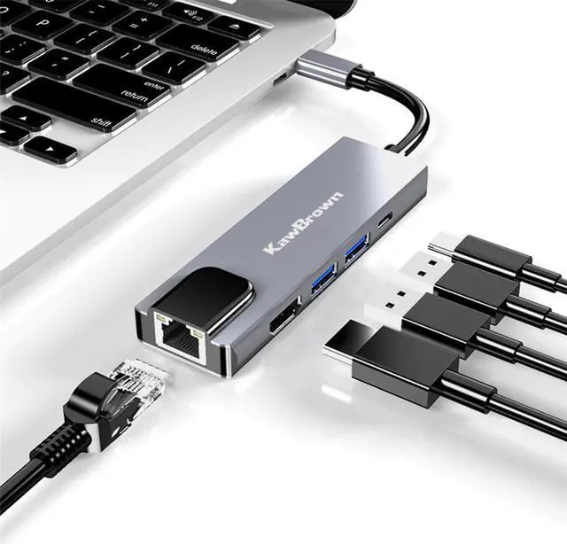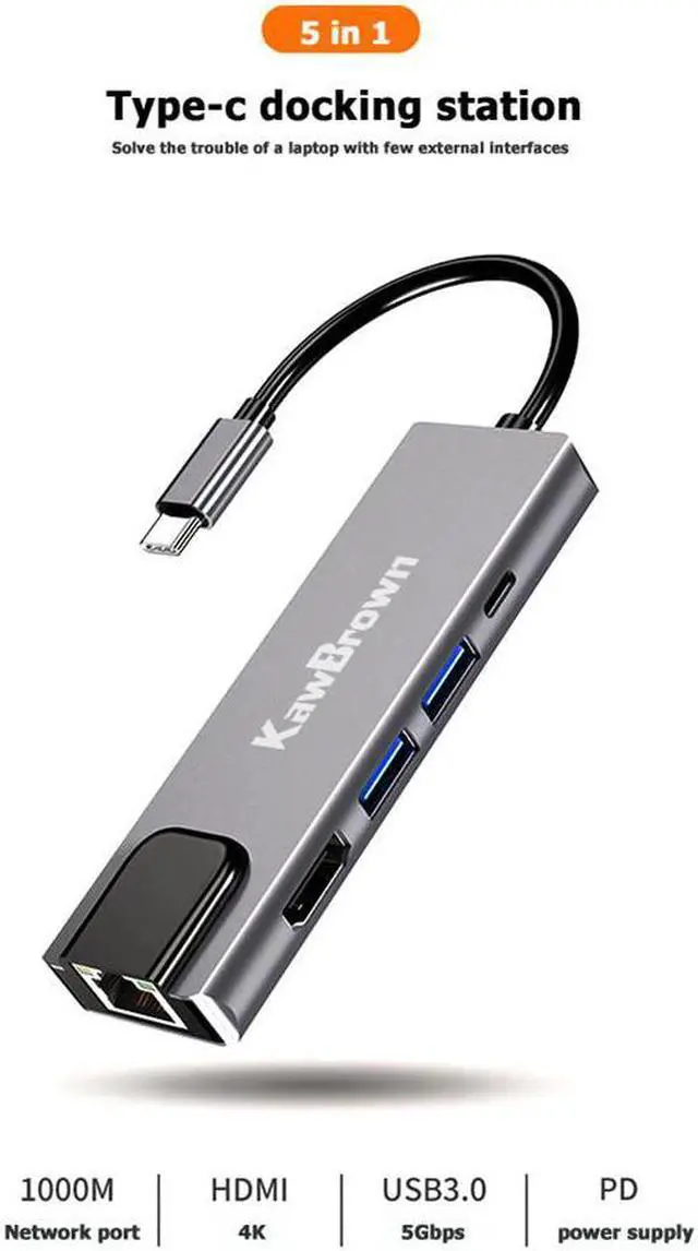 5 in 1 USB Type C Hub Adapter 4K USB C Hub to Gigat Ethernet Rj45 Lan for Mac book