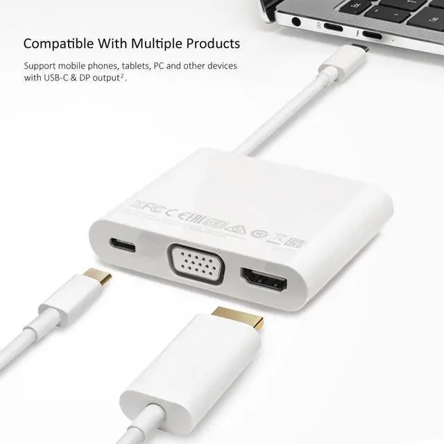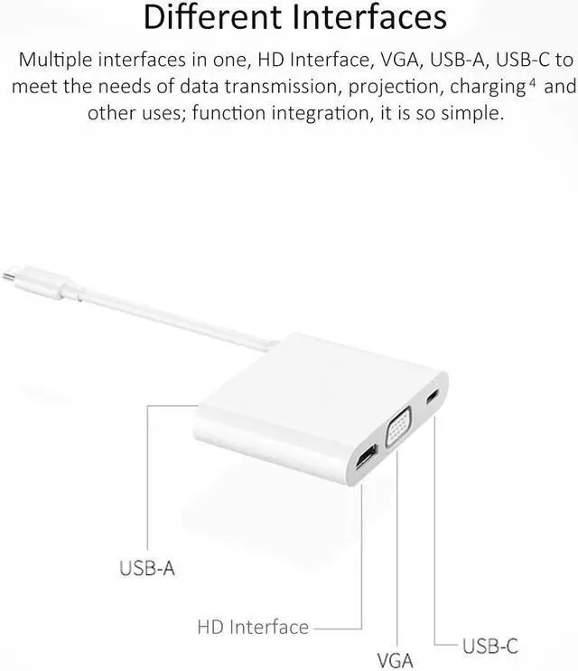 Function Integration: Multiple interfaces in one, HD Interface+VGA+USB 3.0+USB-C to meet your needs of transmission, projection, charging and other uses.