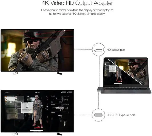Mirror or extend the display of your MacBook Pro 2016 / 2017 to your TV, monitor or projector in up to 4K UHD (3840 x 2160 @ 30Hz) resolution through the HD output port. Backward support 2K / 1080p / 720p / 480p / 360p resolutions.