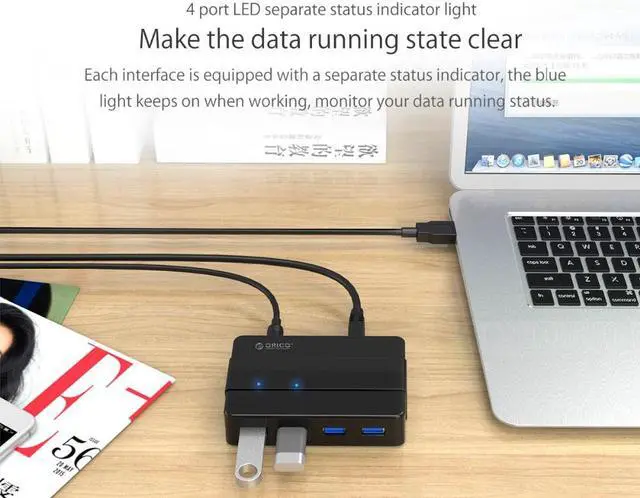 Sweet design : set USB ports on the back, hide the cables, making your desktop cleaner. USB 3.0 hub saves space effectively.