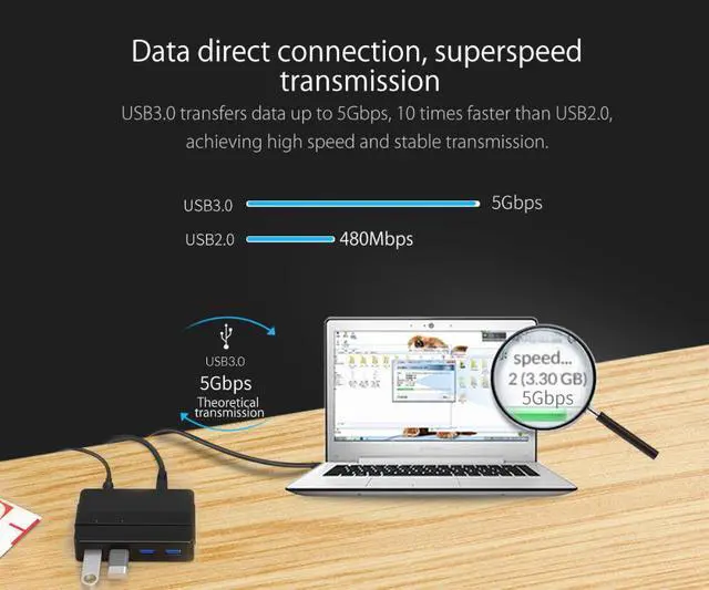 Instant Expansion :USB 3.0 supports transfer rates of up to 5Gbps. Come with Premium 12V2.0A Power Adapter offer 900mA power for each port. Also it is backwards compatible with all USB 2.0/1.1 devices.