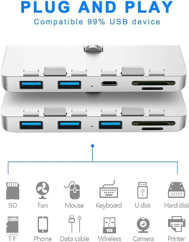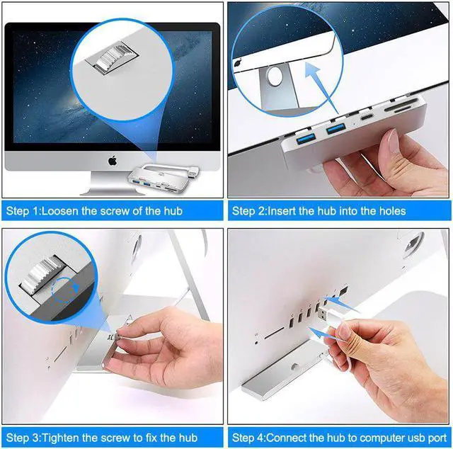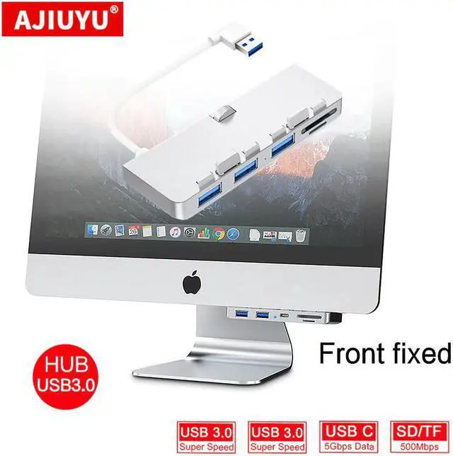 ultra-thin premium aluminum 3-Port USB 3.0 hub with SD/TF card reader combo is exclusively designed for iMac. It adds three USB 3.0 ports and SD/TF card reader slots to the front side of your iMac. There is no more need to twist cables to get to the ports vertically. Now you can easily access USB ports and additional 2 slots card reader at an ergonomic angle! Its sleek aluminum design the perfect complement to your iMac computer. It does not require any software or complicated installation process. With a slim design, it saves you precious desktop space.
