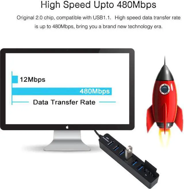 2.The USB 2.0 HUB is designed especially for laptop, desktop computer, expands one USB2.0 port into six easily.