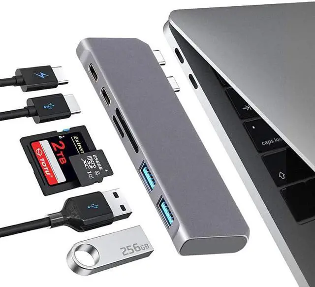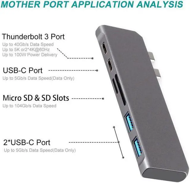 USB C Hub, Best Mac Type-C Dual Hub Adapterwith Hub 3.0 TF SD Reader Slot PD for MacBook Pro/Air 2020