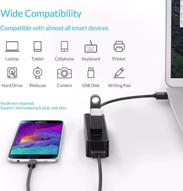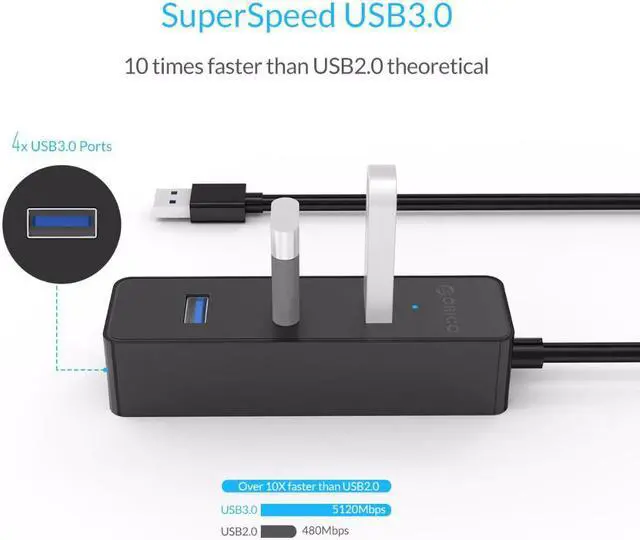 Reasonable 4-port USB distribution reserves enough space for gger plugs, expands 4 USB3.0 ports for your computer or tablet and protects the original port.