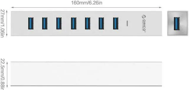 aluminum surface :7 ports USB3.0 hub, compact designed, easy to carry, perfectly matched with iMac, MacBook Air, MacBook Pro, MacBook, PCs and laptops.