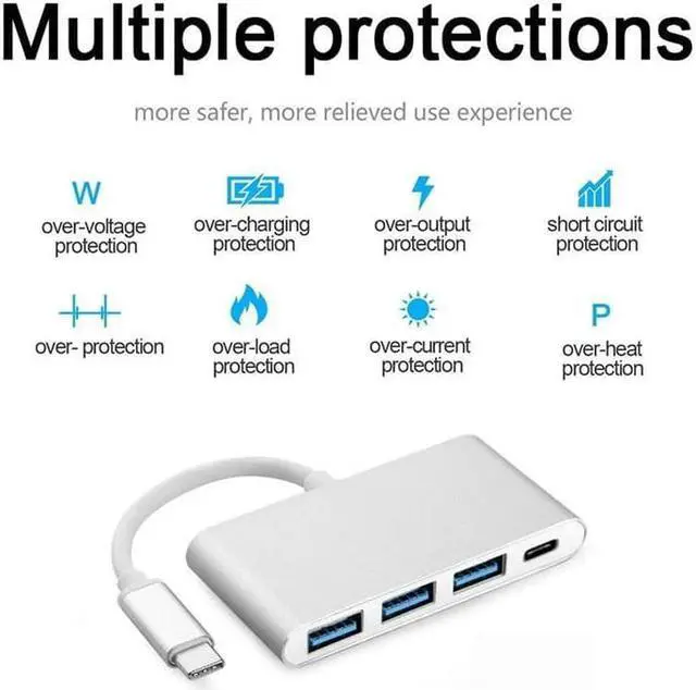 USB C to 3 Port USB 3.0 + USB C Hub USB Type C 3.1 Multiport Adapter