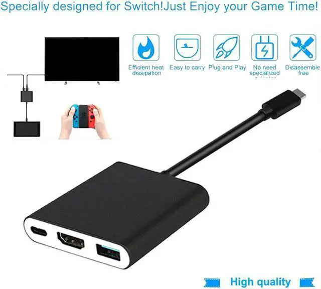 Bringing your Nintendo Switch to a friend?s house without taking your docking station can be frustrating, even if you?ll have access to a TV. Bulky and unable to fit in most carrying cases, the dock isn?t really designed to ever leave your home entertainment center and without it, you won?t be able to enjoy its full resolution, bright and crisp colors. Nintendo Switch to Adapter is a fully functional replacement for the Nintendo Switch docking station that allows players to easily connect the Switch console to a TV without carrying the home dock everywhere. Enjoy your Nintendo switch games on high resolution HDTV, LCD monitors, projectors, high-definition television for larger viewing enjoyment. This pocket-sized device is the ultimate option for Switch owners who value molity over all else.